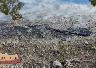 As we completed our loop around the lake, the clouds began to thin, casting patches of sunlight across the water. Paulette had logged her steps, Alec had filled his memory card, and Mackenzie had spotted three more alligators on her own – though I suspect one of them might have been the same fellow counting us as we passed.