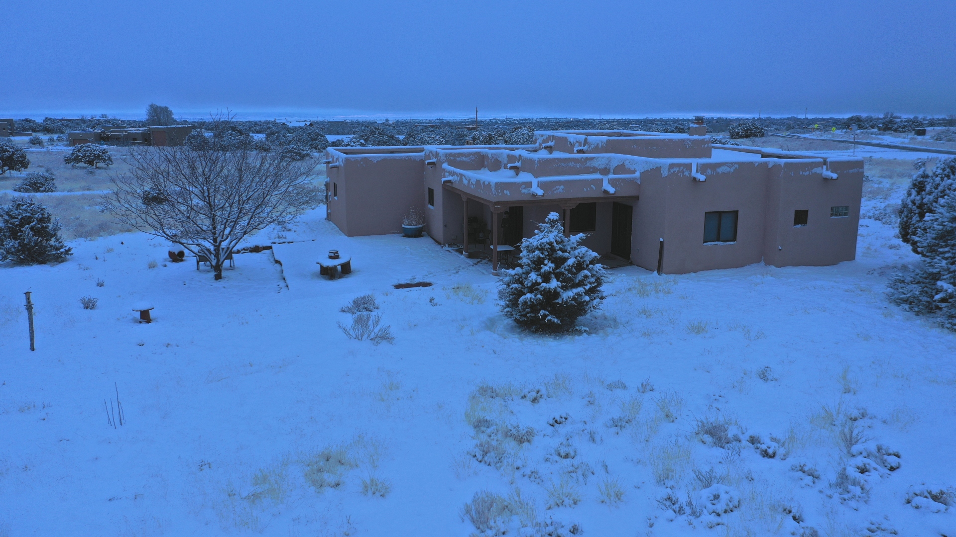 An overnight spring snow storm blankets Santa Fe homes in 5" of much needed fresh snow.