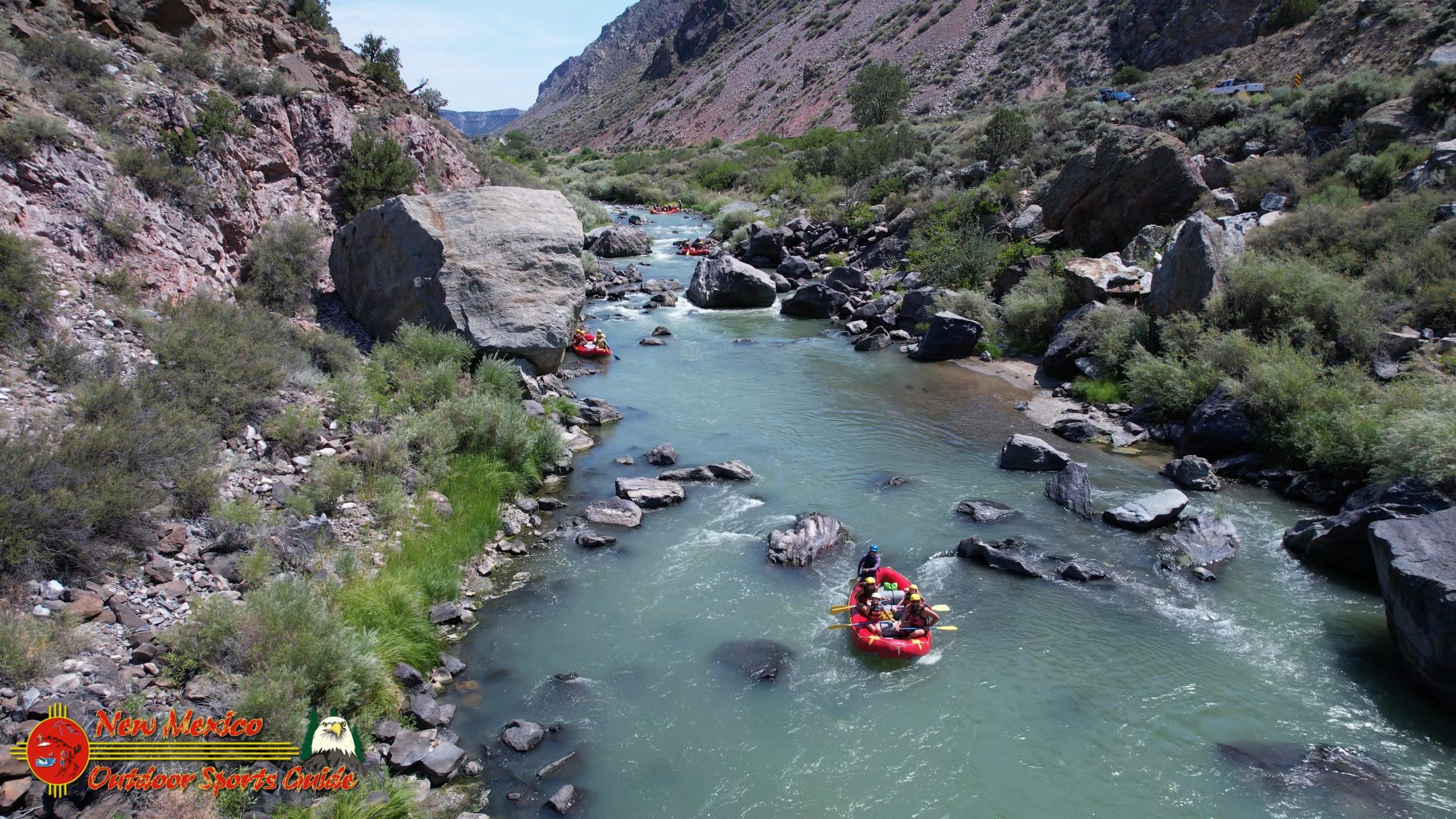 But the whitewater rafters were loving every minute of it. Their excited voices echoed off the canyon walls as expert guides earned their pay, threading inflatable boats between house-sized boulders with the skill of surgeons. Watching through my drone's camera, I captured these graceful vessels gliding downstream, their passengers grinning with the pure joy of adventure as they navigated the Rio Grande's ever-changing personality.